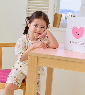 兔兔蘿蔔午餐-【寬鬆】植纖衣七分袖韓國童裝-K54707