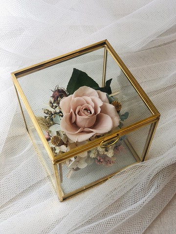 【英式莊園】 乾燥花 永生花盒 婚禮戒盒 / 天然水晶耳環 K金項鍊