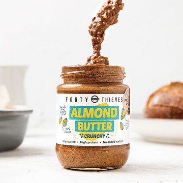 四十大盜杏仁抹醬是由整顆100%非基改杏仁製成。我們保留整顆杏仁外皮直接烘烤,就這樣製成了充滿膳食纖維和天然抗氧化成分的美味抹醬。您可以嘗試在家自製杏仁奶,只需幾湯匙四十大盜杏仁抹醬和一整杯過濾水和少許加拿大楓糖漿。紐西蘭頂級堅果醬無添加任何化學藥劑,在靜放一段時間會產生沉澱、浮油,實屬正常現象, 敬請安心食用。食用前, 請先攪拌均勻, 風味更佳。Q1.杏仁抹醬健康嗎?是的,所有堅果(包括杏仁)都富含維生素,礦物質和天然抗氧化成分。當作為均衡飲食的一部分來食用時,杏仁抹醬是蛋白質和有益健康的脂肪良好來源。此外,杏仁抹醬還提供重要的礦物質,包括鎂,鈣和鐵。此外,還有人體必需的維生素B2(核黃素)和維生素B9(葉酸)等維生素。鈣:對建立和維持強壯骨骼至關重要。輔助心臟,肌肉和神經功能。鎂: 幫助心臟、肌肉及神經維持機能。有助骨骼和牙齒正常發育。維生素B2: 維持正常能量代謝幫助維持皮膚健康。Q2.杏仁抹醬有哪些有趣的吃法?1. 與過濾水和楓糖漿/椰子糖混合在一起,製成一批新鮮的杏仁醬。2. 可用來製作全麥麵包、種子麵包、米果餅乾、番茄和酪梨的美味沾醬。3. 混合烤過的麥片、浸泡過的棗子、蜂蜜和切碎的堅果/種子製作自製燕麥棒。4. 與冷凍藍莓、香蕉、過濾水和綜合堅果粉混合在一起,製成美味的奶昔。5. 在切成薄片的蘋果片上塗上一層就是健康的零食。