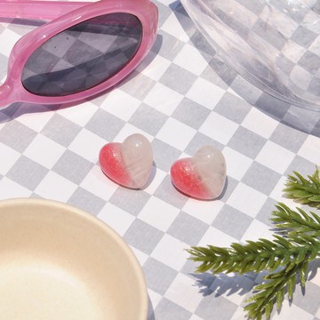 白桃閃閃愛心耳環/ 壓克力耳環