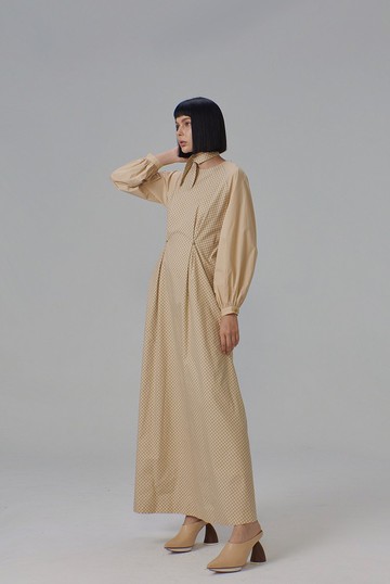 卡其格子拼接長洋裝