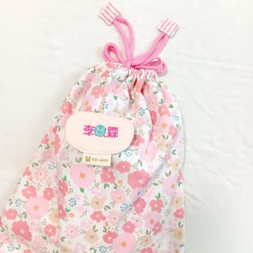 附姓名吊牌。粉彩木槿花。束口袋 尿布袋 衣物袋