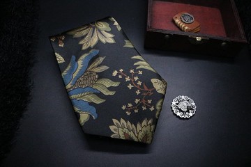 品名;黑色花紋復古領帶 尺寸;最寬處9cm 黑色花紋復古領帶,以奢華的面料的和細膩的手工縫製而成。設計師將別致典雅的古典花卉搬上領帶,並在其間點綴別致奢華的宮廷老花,形成了滄桑與別致的衝突之美圖案極為細膩,繁而不亂,處處體現了細節之美。佩戴上這條典雅且帶有些許暗黑哥德風格的領帶讓紳士的貴族氣場與冷峻氣質得以彰顯,並成為矚目焦點。