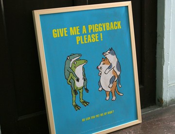 海報貓和青蛙背馱式騎行