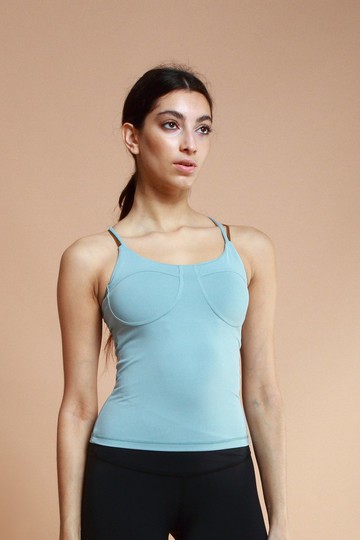 最新開發Breathm布料,以略帶滑面觸感柔軟親膚的超細纖維織成,擁有絕佳的吸溼排汗功能,透氣涼爽且抗UV,比棉感布料輕薄些但仍具包覆性。富潮流設計的馬甲款雙肩細帶上衣,毛面細肩帶為asana品牌經典,有集中托高視覺效果,較適合胸圍A-C cup以內, 前領為小U領不會太低,腋下兩側包覆, 背部水平大挖空,長度為比舊款短約4吋的短版上衣。如需加長或訂製當季其它顏色,請洽客服!上衣可置胸墊,隨貨附贈一副MODEL身高176CM/三圍32B/22/35 上下皆S