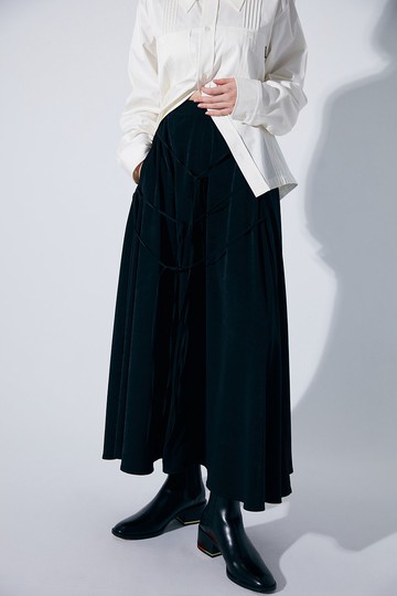【SALE】HS 細褶黑白印花裙 黑色