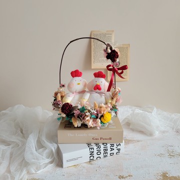 【💍婚禮帶路雞】婚禮習俗裡,新娘要帶著象徵"起家"的雞家族到新的家庭。俗語說『帶路雞新娘好起家』、和丈夫好相處白頭到老,也像雞隻一樣多子多孫,記得把帶路雞放在新娘房4個月又9天,讓幸福好事可以長長久久唷~【🏠入厝帶路雞】傳統習俗裡入厝會準備成對的入厝雞,由主人先領入厝雞進門,將其放置在新家的客廳或新房,並將雞頭朝屋內,寓意把好運帶入屋,且有"起家"(台語)的意思!📏 尺寸:約花籃30x30x30 cm❓ 這個是乾燥花還是永生花?此商品為乾燥花+永生花材製成。(下面有乾燥花和永生花的簡單介紹)🔊 有聲音的咕咕雞們https://youtu.be/-DBkrqiC_qghttps://youtu.be/NzrxG19Ts6Q?feature=sharedhttps://live.staticflickr.com/65535/54043995129_d018aeaaf4_h.jpghttps://live.staticflickr.com/65535/54043724251_b7965d8cfc_h.jpghttps://live.staticflickr.com/65535/54058678967_20e56ce49a_k.jpghttps://live.staticflickr.com/65535/54059887249_c6f454e648_k.jpghttps://live.staticflickr.com/65535/50938085188_8c6362250e_m.jpg⏰ **如何保存** :無須澆水、放置通風處、保持乾燥、可用蜜粉刷、小刷子、吹風機小冷風去除灰塵。 🌹永生花介紹:為鮮花透過甘油和保存液浸泡後,重新染色製成的花朵, 價格昂貴,可保存時間約為3-5年。 🌷乾燥花介紹:大部分為設計師親自至花市挑選新鮮花材自製,以確保乾 燥花最好的品質,可保存時間約1年左右。 🚚 **物流時間** :宅配時間約1~2日、店到店2~3日, **此時間非連假時間❌ 連假、雙11前、雙12前、聖誕節、過年前我們都不保證物流時間🚚 **物流方式** :帶路雞的花籃為易碎商品,不可店到店,店到店不能保證商品運送方式,因此只接受 "宅配" 運送,或 "自取"📆 **工作天數** :每個訂購按鈕的下方皆有標示喔! 每個商品皆有不同的工作天數喔~https://live.staticflickr.com/65535/50938625391_01247a67d2_w.jpghttps://live.staticflickr.com/65535/50938734872_253e698f70_w.jpg❗❗ **急單處理** :如果在基本工作天數以內就算急單,請禮貌私訊可否接單,如果可以接單,急單請務必使用"宅配",也歡迎預約板橋工作室自取喔!❌ 我們不接受下單了才私訊異動製作天數,要異動工作天數,請務必在下單前詢問💌 **免費賀卡** :如想再另外索取賀卡,滿NT.1500可免費贈送一張,樣式請參考https://www.pinkoi.com/product/Ruuf62XX,下單後備註在"給設計師的話"即可。👐 **100%手工製作** :我們都是手工製作每個商品,因此花材葉材、形態...會有些許不同,無法一模一樣,如花材因季節性缺貨,我們將保持色系、結構性為前提,會些許調整整花材內容喔~。📸 **色差** :我們每件作品都是"自然光"下拍攝,已盡量與原色相近,但每台電腦和照片解析度都不同,難免與實品會有些微色差。🚛 **運送狀況** :每一件商品的包裝,我們一定盡最大的努力保護他的完整,如果有掉一點點小葉子、小花、削削...都是正常現象,並不會影響整體作品,如果有運送上的損壞,請第一時間用 "聯絡設計師" 或是 "LINE、FB、IG" 聯絡! 🙏 **萬分感謝** :感謝您看到這裡,如果上述真的有無法接受的,❗❗建議您請勿下單❗❗,再次非常感謝您的喜愛~我們真的很期待可以為您服務喔!【其他平台、特殊客訂】❋ LINE🔎@4870n❋ IG🔎覓朵朵事 followflowers.eilin❋ FB🔎覓朵朵事 Follow Flowers🌹 覓朵朵事有永生花、乾燥花花材,捧花造型多種:韓式捧花、圓形捧花、森林系捧花、自然系捧花、瀑布行捧花...歡迎免費線上選購,有任何問題都可以臉書/IG諮詢,做一束專屬於你的新娘捧花,全台皆可配送,請安心訂購喔!🌹 除了永生捧花、乾燥捧花,我們也提供:求婚戒盒、婚禮胸花、婚禮手腕花、婚禮小物...