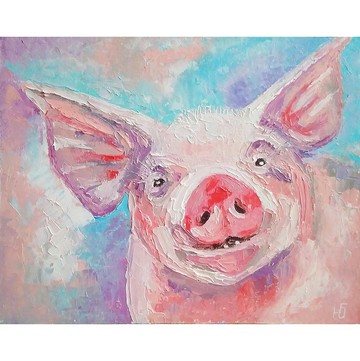 豬肖像動物繪畫原創藝術獨特的牆壁裝飾由 RinaArtSK 製作