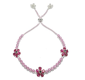 純銀八心八箭鋯石單排手鍊 - 野莓花(紅色)