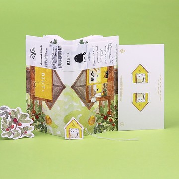 封面是源自Shine的繪本故事「小動物商店街」:隱藏在大樹上的綠羽茶室,是只有旅鳥才能發現的地方~它們喜歡在這裡停留歇腳,喝杯茶吃些點心,再開始長途的遷徙飛行~每本筆記本裡面附有一張同款的小動物紙模,可以做成書籤或者立牌。同系列本子購滿6本將會得到一套神秘的特典紙模,可以製作自己的故事場景哦!