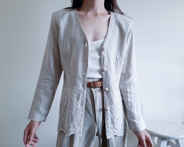 【NaSuBi Vintage】無領設計薄毛古著西裝外套