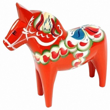 ‧由來:被視為瑞典象徵的達拉木馬Dalahorse,來自瑞典中部的達拉納湖區Darlana, 公元17世紀前後,在原始森林密布的瑞典中部達拉娜地區,人們大多以伐木為生。工人們一旦進入原始森林,常常是十天半個月,最多甚至要待半年時間。伐木工人思念孩子,就有人想到用木頭刻一些小玩具,回家時可作為給孩子的禮物。馬之所以成為當時伐木工最好的模特,是因為在那個時期,伐木工人採下的原木要運到外面主要依靠馬。為遠行、馱貨、幹農活,瑞典幾乎家家養馬。所以馬就成為伐木工及其家人最親密的伙伴。 當達拉娜伐木工人雕刻的木馬逐漸在全國各地流行起來後,人們就以它的產地為其命名了。真正讓瑞典木馬聲名大振是在1939年紐約舉行的世界博覽會上。當時,達拉娜地區的作坊為瑞典展區製作了一匹兩米多高的大木馬,引起了人們的關注。當時很多家報紙在當時都選用了瑞典木馬的大幅照片來報導這次展會。其像徵著力量、勇氣、忠實、智慧和尊嚴的達拉木馬價格昂貴,這不僅是因為達拉馬是全手工製作,瑞典人為了維護這一品牌,也決不會降價出售。