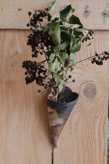 刻花花蓮原礦土吊掛式陶製花器(有瀝水孔)