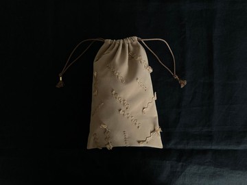 刺繡抽繩袋 - 象牙色