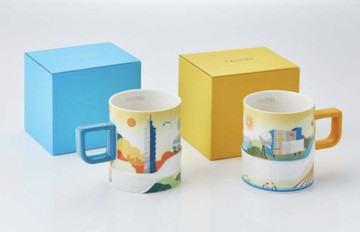 「台北城市杯」具有特殊造型把手、層次感浮雕杯身、雙色釉及繽紛圖樣,杯身上除了印有台北101大樓、大巨蛋、台北表演藝術中心、大直橋等台北市特色建築,還有貓空纜車以及可以暢遊台北的公共自行車圖樣設計。此外,整體設計上則參考了TAIPEI LOGO的元素,杯身上的河流取自T的上半部,把手的形狀來自於環境共融的圖案,代表希望的黃色則融入整體的配色中。河川部分以浮雕設計凸顯高低起伏,並以珠光花紙為點綴,呈現波光粼粼樣貌,為城市杯增添了更多活潑與層次。包裝則以代表光明希望的設計元素,並以象徵希望與未來的多樣性,搭配橘色、金色等充滿熱情與活力的顏色,作為自用與贈禮都非常適合。材質:全瓷規格:400ml耐熱溫度0-100˚C