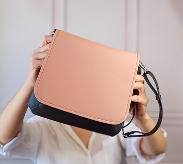 手工斜背包。採用純素皮革製成,內襯為織物。細節:顏色 - 粉色、黑色。按壓式磁扣開合。內有一個隔層口袋。約略尺寸:寬度:9.45 英吋 (23.5 公分)高度:8.3 英吋 (22 公分)可調式背帶,最長可達 53 英吋 (135 公分)請在訂單備註中註明:1) 包蓋顏色 -2) 包身顏色 -(若您未指定包款顏色,將預設使用商品首圖的顏色)希望您會喜歡!感謝您的光臨!