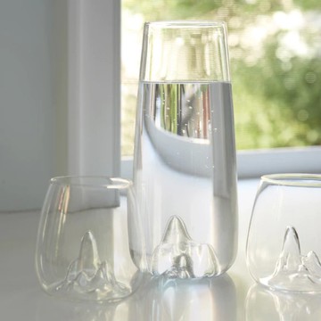 帶著你喜歡的飲料逃到遙遠的地方。這個山水玻璃水壺設計由輕質的模壓硼硅酸鹽玻璃製成——為葡萄酒、汽水、果汁等融入到山景裡,杯底的山形如工筆畫中的勾勒,非透明的液體可以突出壺底的「山」的輪廓。由 Aruliden 設計,該工作室的作品曾在 MoMA 展覽中展出,包括 2011 年的展覽 Talk to Me。Talk to Me 探討了人與物之間的交流。所有對象都包含遠遠超出其直接使用或外觀的資訊。