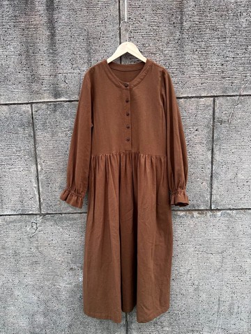雙紅色圓立領脇邊立體口袋棉麻襯衫洋裝