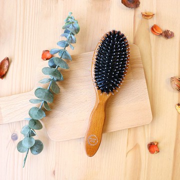 | 經典氣墊鬃毛梳 |三十三木梳最經典,最推薦的氣墊鬃毛梳。選用優質鬃毛,鬃毛量密集搭配尼龍圓珠,整體排列整齊。鬃毛可修護髮質,尼龍圓珠輔助按摩頭皮,輕鬆梳開打結 ,撫平頭髮毛燥 ,長期使用讓頭髮更有光澤。木柄做工採用曲折木柄,舒適好握 。很適合早晨起來快速整理頭髮使用!●購買梳子2支以上將以簡單環保包裝一起出貨,如有需各別一個盒子下單時請備註喔| 商品規格 | 22.3 X 6.3 X (齒長) 2 / 單位:cm| 保養方式 |1.請勿讓髮梳長期曝曬在強光日照下。2.請勿讓髮梳放置潮濕地方,例如浴室,將木梳保持於陰涼乾燥通風處即可。3.請勿將髮膠、定型液等產品直接噴灑於髮梳上以避免沾黏、氧化。| 清潔方式 |洗髮劑本身是在清潔毛髮的髒污及油垢,故使用洗髮精清洗最佳。清洗前先清理掉纏繞在髮刷上的毛髮,再用清水將洗髮劑清洗。清洗時可用軟毛的舊牙刷仔细地刷掉梳齒間的污垢。清潔完畢後,再使用吹風機稍微吹乾即可,不宜超過一分鐘,主要讓多餘水分大致吹乾且不會使木頭過於潮濕,可使髮梳長久保存。| 注意事項 |1.木紋及色澤每把梳子不盡相同,以及電腦螢幕與拍攝光線之差異,請以收到實際商品為準。2.本產品屬個人衛生用品,收到後請先檢視新品,如有任何問題請與客服聯絡,本產品拆封使用後,即無法換貨。3.天然豬鬃毛本身就帶有味道,若覺得味道較重,可放置風扇前吹個幾天,味道會比較淡,若對味道比較敏感者,會建議不要購買喔~謝謝您