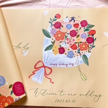 【客製】花嫁 簽名綢 油畫布 可愛插畫 婚禮佈置 結婚紀念