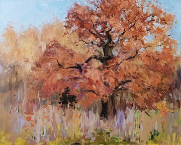 橡樹繪畫秋季樹原創藝術油畫風景畫布藝術