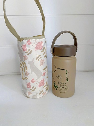 hairmo粉花兔兔飲料手提袋-布質(冰壩杯/手搖/保溫瓶/大象杯)