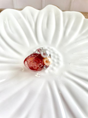 日本的傳統工藝 手鞠球 刺繡 耳環 櫻桃 珍珠 深藍 紅 米白