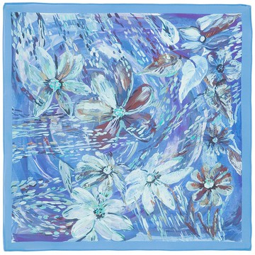 水彩百合與藍白鶲純棉手帕 50cm 日本 Christal ART
