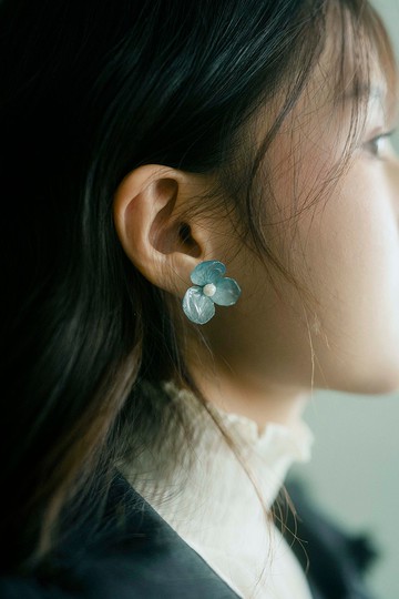 本產品的材質是珠寶樹脂,請避免配戴耳環洗澡、進入蒸氣室,且避免日曬直射,不配戴時請收納在盒子裡,以拭鏡布擦拭清潔,避免使用酒精。因為選用大自然的材料,每朵花朵都是獨一無二的,兩耳花瓣數目,大小皆會有些微差距。“Due to the individuality and the natural condition of the materials, color and shape may vary slightly.”