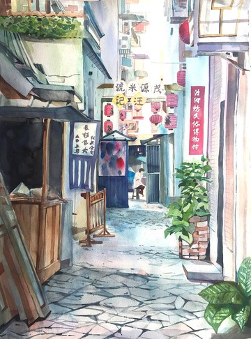 記憶中的小巷-水彩風景畫/純手繪藝術畫作/藝術掛畫/精緻居家裝飾