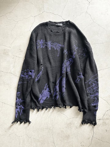破損針織衫/黑色/紫色/F尺寸/hellcatpunks/hcp-kn-0033