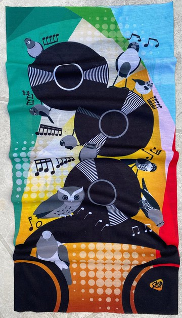 [圖案]山裡的鳥兒是這麼會唱歌,像轉動的黑膠唱盤,婉轉嘹亮的歌聲就這麼迴盪在森林裡。聲音很近,要找到牠們卻是個考驗。伴隨鳥兒的是歌聲的節奏,鳥兒樣貌像閉上眼睛聆聽,以無色彩呈現,顏色就用經常被拷問的八色鳥色彩來呈現吧![配色]八色鳥的多樣色彩,搭配強烈的黑色和音符, 變成頭巾竟然變得好有個性。[材質]100%Primaloft。特殊的纖維結構,輕且柔軟,能耐久而且透氣不悶熱![尺寸]平放寬度約25.4cm/長度約50.5cm/ 單一規格[重量]約30g (一般頭巾約35g)[包裝]生產時產生的印刷紙形式改變暫時無法取得作為包裝。 得用上自家設計的包裝紙包裝。注意:1.照片為實品拍攝,因螢幕顯色不同而有差異2.包裝"紙"本身不耐水3.清洗方式為清水或使用極少量清潔劑,請勿使用柔軟精產地/製造方式台灣製造
