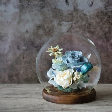 不凋花玻璃罩夜燈【寒冰灰藍】永生花/新婚/七夕情人節/畢業禮物