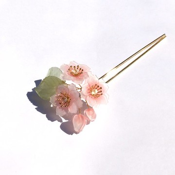 手工製作的重瓣櫻花是早春的粉嫩色彩搭配閃亮的水晶珠點綴著小巧的花苞素材:樹脂、白水晶。尺寸:5cmx7cm。簪長11cm。可訂製為木簪(需加價)/髮夾,配件參考如圖5。請私訊設計師~。【小提醒】1.電鍍金屬長時間接觸水會有氧化褪色現象,氧化褪色後無法回復,請盡量避免與水接觸,洗澡時請別配戴喔。2.天然珍珠,貝殼.....等等有機天然素材,請盡量避免與水接觸,以免氧化/磨損導致光澤暗淡,若是碰到水可用軟布擦拭保持乾燥喔。3.天然寶石有形狀不一、表面有瑕、內里棉絮、礦裂等天然瑕疵,小店使用寶石非專業珠寶等級,購買前請看清說明喔~4.首飾設計小巧細緻,勿用力拉扯、重壓,以避免造成飾品變型、損壞。【包裝說明】附簪盒以及免費寫小卡片服務(卡片文字內容30字以內)