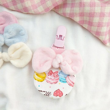 蝴蝶結馬卡龍 。毛毛蝴蝶結圓形平安符袋 (可繡名字)