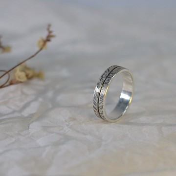 質感敲印 — 羽紋輕盈的羽,已能變成一枚戒指✨帶一根羽翼走吧~-**{商品細節}**品項:戒指尺寸:適合國際圍#6~21號 / 戒寬4.5mm (會依尺寸大小做比例微調)材質:純銀*純手工製作,每件訂製皆會有些許不同,獻給獨一無二的你 / 妳!*此款戒指可訂做國際戒圍#6~#21,可比照戒圍尺寸表,告訴設計師適合的尺寸。https://live.staticflickr.com/65535/51906391332_9e0db7ee5a_b.jpg*本商品可免費提供敲字服務,紀念日、英文姓名、象徵性詞語 ex. good luck請務必與設計師確認想敲印的款式及內容是否適合商品哦!(因比例關係,此商品不建議敲印≧3mm之鋼印)https://live.staticflickr.com/65535/51226133377_07f0faa08d_b.jpghttps://live.staticflickr.com/65535/51231021721_42bc411d0a_b.jpg-**{測量戒圍方式}**1.可測量現有戒指的直徑,告知我們您的戒指「內圈直徑是幾mm」。2.到金飾店請店家幫忙測量舒適之「國際戒圍」。3.剪裁寬度1cm紙條圍繞手指一圈,用膠帶固定,鬆緊度為舒適、可取下為原則。取下後,於重疊處剪開,並告訴我們所測量之「長度為幾cm」(不須換算成國際戒圍)。4.如不確定測量結果,都能向設計師詢問確認哦!😀**{製作流程}**1.請提供想要敲印的內容(ex. ❀LUCKY❀ 12/24 )2.會先與您確認敲印內容可以完整敲入,確認沒問題而後不得更改設計3.付款後才會開始製作,如有疑問都能詢問設計師哦!**{貼心提醒}*****敲字客製商品不接受退貨或換貨哦~*戒圍尺寸請與我們確認清楚再下訂喲!*若確定戒指尺寸後,售後不合需修改,我們將額外收取修改費150元(不含來回運費)因此請再三確認尺寸再下單喲!-**{保養方式}**飾品表面為一般拋光處理,並無電鍍,勿大力施壓與凹摺,平時請保持飾品乾襙,若產生氧化現象皆為正常,以軟毛牙刷沾附清水輕刷即可。市售之拭銀布、拋光膏等保養方式,將會造成飾品本身形成光亮表面,請斟酌使用。**{購買此商品附贈}**◆拭銀布 (每筆訂單即附贈一張,拭銀布可重複使用哦!謝謝您一起愛護地球,不過多使用,不浪費)◆厚款夾鏈袋 (沒有配戴時可收於夾鏈袋,可避免商品與其他物品碰撞、氧化哦!)◆免費包裝 (圖片為包裝參考)若不須紙盒可備註:更換簡易牛皮紙盒包裝若須升級木製禮盒可至此加購:https://www.pinkoi.com/product/iY8XdTHrhttps://live.staticflickr.com/65535/52866320617_335347f5ae_b.jpg-**{安心出貨聲明}**◆本商品為__純手工製作,下單付款完成後,保守估計製作日約為5日(不含假日)__,提早製做完即會提前出貨,如有送禮日程上的需求,歡迎跟設計師聊聊。◆個人工作室,商品全程由設計師製作、寄出,不會有第二人經手。◆備貨過程加強人員清潔:工作室注重整潔,每日都會固定清理打掃。◆出貨流程留意防護措施:商品皆會以75%酒精消毒,並以拭銀布擦拭乾淨。◆每日控管測量人員體溫:確保設計師體溫正常,並在製作時全程戴著口罩。https://live.staticflickr.com/65535/51215661760_cb2153d4a8_b.jpg