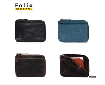 Folio : Tuff 拉鍊短夾 (雙色) 真皮 RFID 防護