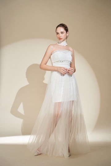 2025 Collection : The beauty of imperfection 不完美的美本季的概念來自於靈魂之美,強調細節中的獨特性,從設計的不規則到布料的自然流動,展現簡約與繁複交錯的魅力。即使有許多不完美的地方,但別懷疑,你的靈魂是最迷人且獨一無二的。/輕婚紗系列:Roxanne - 指有才華的人,如同此款設計巧妙地將柔紗與緞布結合,增添層次感設計重點:百褶剪裁上身、拼接設計感紗裙、含精美頸飾https://live.staticflickr.com/65535/54265431223_a8cfb46438_b.jpg▽上身布面細節,閃爍亮片點綴https://live.staticflickr.com/65535/54265443994_6100497a8c_b.jpg┃商品說明┃https://live.staticflickr.com/65535/54406928490_39c5c97777_o.jpg.裙長(腰下中心處量):內短裙20 1/4吋,表裙46 1/4吋.尺寸為手工測量,實際尺寸會有些許誤差為正常現象.成份:100% polyester.顏色:象牙白┃注意事項┃・提供修改服務,費用依修改細節而定。如需了解詳情,請洽相關人員.商品為接單後才製作,為保持品質,故需要較久的製作期,約25~45個工作天(不含例假日).布料下單後才會進行採買,少數情況會缺貨,有問題會另行通知.商品為下單後才進行製作,無提供退換貨服務,出貨前內部人員會詳細檢查,收到衣服若真的發現損壞請在24小時內立即告知,逾期不受理.為保持商品最佳狀態,請交給專業洗滌.商品照因螢幕不同會有些許色差為正常現象┃Q&A┃Q:是否能急單製作?A:可以,會收取商品價格的15%做為急單費,製作期可提早,請以實際詢問的出貨日為主Q:有實體門市可以試穿嗎?A:我們是工作室,非門市性質,需要試穿請預約Q:我看不懂尺寸表怎麼辦?A:我們使用美國尺碼(USA),若對尺寸有疑問可以提供三圍,並由相關人員為您推薦Q:是否有現貨可以購買?A:一般商品都需要訂製,現貨可以參考:SALE 白紗 https://www.pinkoi.com/product/Ci3H5KR4https://www.pinkoi.com/product/knWtiCsLSALE 多色晚禮服https://www.pinkoi.com/product/Tz3fgbzMSALE 配件https://www.pinkoi.com/product/e8NLeGCg┃Model 資訊┃身高178cm穿著S┃品牌資訊┃https://live.staticflickr.com/65535/53580369761_a9d7ef0339_b.jpg