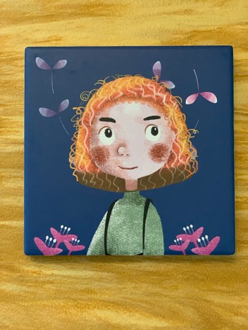 陶瓷杯墊--藍、綠、粉紅三種不同造型個性女孩