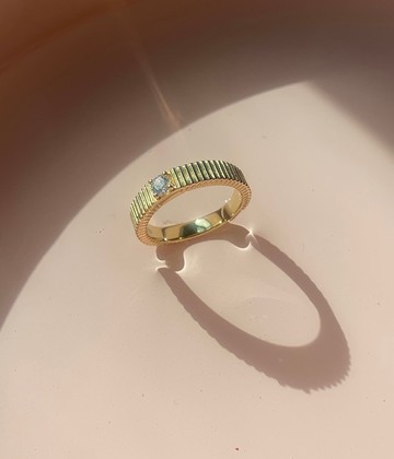 The Single Solitaire Band 戒指/ 925純銀鍍18K黃金/ 方晶鋯石