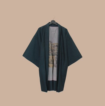 Back to Green-日本男款羽織 林中 石 虎M-08/vintage kimono