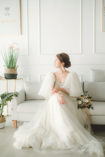 Dahlia Blanc獨家設計 愛心領薄紗分層婚紗