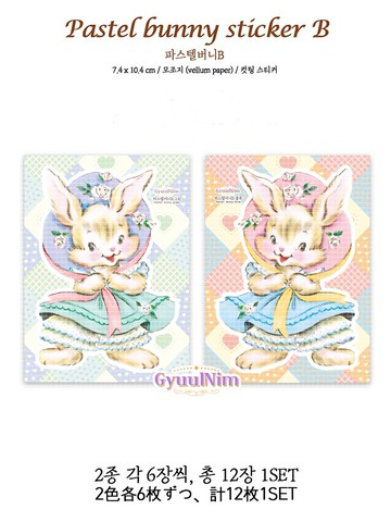 柔和色調兔子貼紙 (B款)