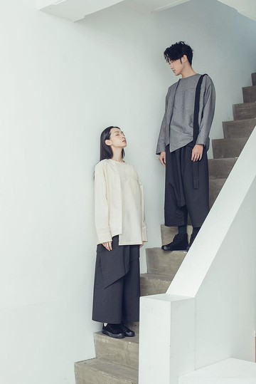 減制 圓領側門襟長袖上衣(黑/灰/原胚) Organic Cotton & Recycle