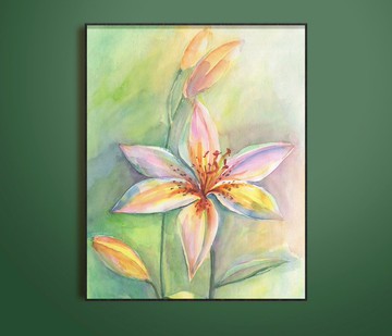 百合花原創水彩畫現代繪畫精緻花卉藝術 39x29 厘米