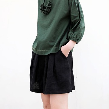 https://img.alicdn.com/imgextra/i4/85545530/O1CN01EnU0B41qimznadicQ_!!85545530.jpg设计细节:宽松洒脱的夏季亚麻短裤采用法国亚麻织造的黑色亚麻面料制作凉爽透气有筋骨 短裤腰部一周松紧带,穿脱方便前后共有八个精心缝合的合褶所以腰臀部不会太蓬,从而显瘦合褶散开后裤型放开,有点裙裤的感觉因为裤脚比一般的短裤大一些所以对比起来更加衬托腿型显瘦起到轻快修身的效果 如果把上衣放在短裤外面来穿衣角压住裤角,是休闲舒适的宽脚短裤的感觉如果把上衣扎进腰里则裙裤的感觉更明显,像短裙,活泼俏丽 衣服完成后经过一道纯净水洗的工序成品尺寸稳定,手感自然舒适随性的风格是春夏季的百搭单品 材料:表布:100% linen 纯亚麻 洗涤:可以机洗请放入洗衣袋与深色衣服同洗在阴凉处挂干亚麻档蒸汽熨烫 参考尺寸:(手量会有误差,尺寸仅供参考)S号 腰围66 臀围108 裤长41 脚口92M号 腰围70 臀围112 裤长45 脚口94L号 腰围74 臀围116 裤长47 脚口96模特芝士:身高170cm,体重52kg肩宽39, 三围82-64-90, 试穿M号 https://img.alicdn.com/imgextra/i3/85545530/O1CN016qdmfl1qimzvLEPMS_!!85545530.jpghttps://img.alicdn.com/imgextra/i4/85545530/O1CN01X7X4vc1qimzsuaWux_!!85545530.jpghttps://img.alicdn.com/imgextra/i4/85545530/O1CN01e7gyu21qimzjUpgB8_!!85545530.jpghttps://img.alicdn.com/imgextra/i3/85545530/O1CN01objXIY1qimzoDNOU1_!!85545530.jpghttps://img.alicdn.com/imgextra/i4/85545530/O1CN01wdOmg71qimzr0oFhQ_!!85545530.jpghttps://img.alicdn.com/imgextra/i2/85545530/O1CN01jaSswZ1qimznWbmbR_!!85545530.jpghttps://img.alicdn.com/imgextra/i1/85545530/O1CN01Y16J7M1qimzdysEtp_!!85545530.jpghttps://img.alicdn.com/imgextra/i1/85545530/O1CN01SK5TYN1qimzw4H05f_!!85545530.jpghttps://img.alicdn.com/imgextra/i4/85545530/O1CN0170t1gB1qimztwzDUD_!!85545530.jpghttps://img.alicdn.com/imgextra/i1/85545530/O1CN01ufztE61qimzuhxNVW_!!85545530.jpghttps://img.alicdn.com/imgextra/i4/85545530/O1CN0157j7wp1qimzoNbLHM_!!85545530.jpghttps://img.alicdn.com/imgextra/i2/85545530/O1CN01UHYK7I1qimzoDMrCS_!!85545530.jpghttps://img.alicdn.com/imgextra/i3/85545530/O1CN01J47TrR1qimznacqa1_!!85545530.jpg细节说明:https://img.alicdn.com/imgextra/i3/85545530/O1CN01TIUzgG1qimzqbXaxv_!!85545530.jpghttps://img.alicdn.com/imgextra/i3/85545530/O1CN01JiUleX1qimzwWz021_!!85545530.jpghttps://img.alicdn.com/imgextra/i1/85545530/O1CN01jdTyAF1qimzjUp8uY_!!85545530.jpghttps://img.alicdn.com/imgextra/i4/85545530/O1CN01Ssxum31qimzoplyf3_!!85545530.jpg