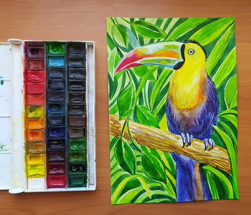 巨嘴鳥在叢林水彩藝術繪畫動物鳥原創藝術藝術品