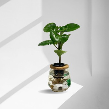蕨美植栽 室內辦公室水耕植栽 圓葉椒草(發財樹) x 弧形玻璃瓶