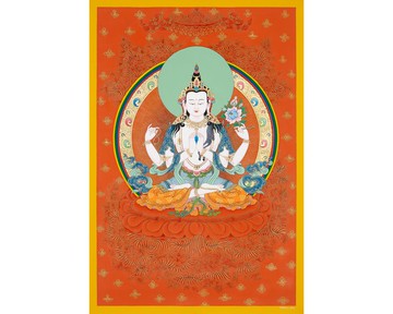西藏唐卡畫布上的四臂觀音佛像家居祝福