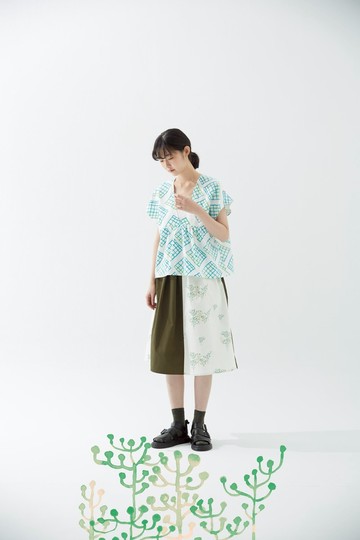 y1,hsuan X 紅林 獨家印花布系列 拼接摺裙tree
